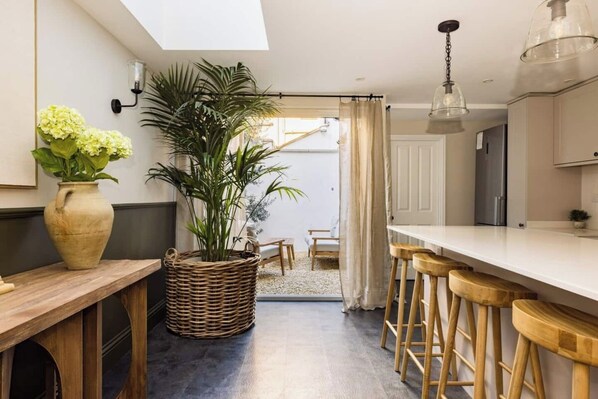 A charming five-bedroom townhouse nestled within one of Fulham's leafy residential streets. The Fulham House is a wonderful setting for a family gathering or a city get-together with friends. Boasting a sumptuous sitting room, an office & reading space, and a large open-plan kitchen and diner - there’s more than enough room for up to ten guests to unwind in comfort.