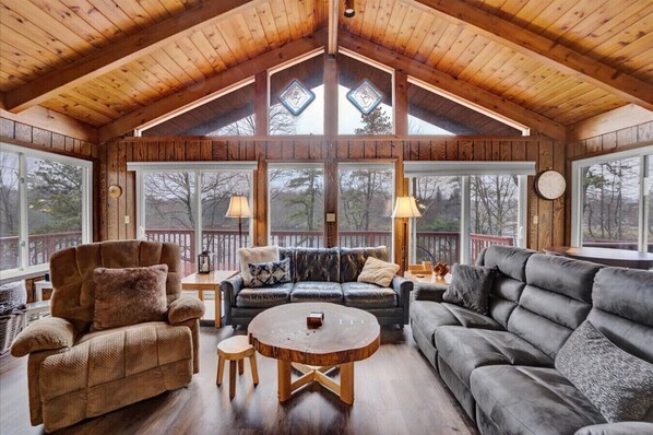 Each of the four bedrooms is designed to offer a restful night`s sleep. On the main level, you`ll find three bedrooms featuring a king bed, queen bed, twin bed, and bunk beds. Upstairs, a cozy king bed awaits. Perfectly suited for comfort and relaxation!