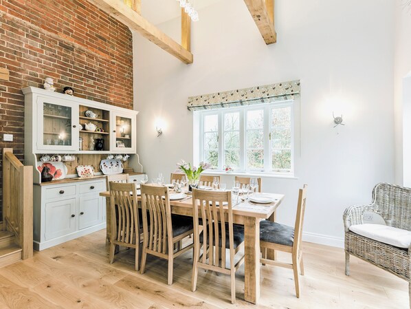 Dieses hervorragende Ferienobjekt ist der ideale Ausgangspunkt, um den New Forest, Portsmouth, Southampton, Lymington und die Küstenorte Hampshire zu erkunden. Wohnzimmer mit Holzbalken, Kaminofen, Sichtmauerwerk und original Kupferwaschbecken. Drei Stufen hinunter zur Küche / zum Essbereich mit TV, hohen gewölbten Balkendecken, unverputzter Ziegelmauer, Holzboden und Französisch Türen, die zur Terrasse führen. Dienstprogramm mit Toilette. Schuhraum. Doppelzimmer mit en-suite Jack 'n' Jill Duschraum mit WC (auch über Flur erreichbar). Steile Treppe zum ersten Stock: Zwei Doppelzimmer, eines mit 5-Fuß-Bett und TV. Einzelzimmer mit ausziehbarem Einzelbett (für +1 Kind). Badezimmer mit Badewanne, Dusche und Toilette. . - Holzofen - Erstbrennstoff, danach vor Ort verfügbar