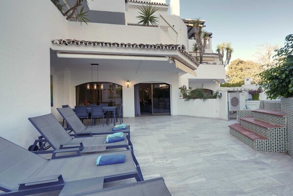 Willkommen in unserem erstaunlichen Familienapartment am Strand, das sich an der berühmten Golden Beach in Ost-Marbella befindet. Dieses Apartment bietet das perfekte Outdoor-Lebenserlebnis mit einer großen Terrasse, die mit einem Essbereich im Freien und Sonnenliegen ausgestattet ist.