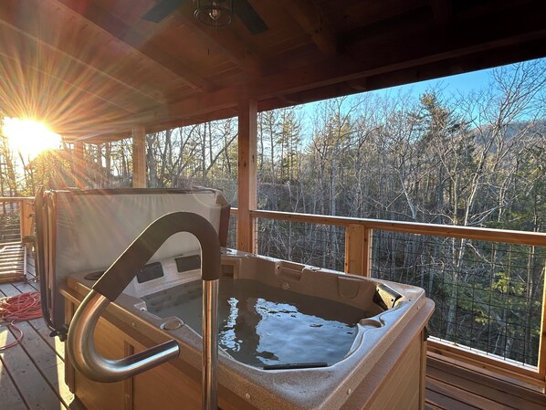 Charming 1-bedroom log cabin with AC and hot tub near Linville Gorge