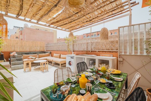 ✅ Rooftop privé avec bassin rafraîchissant, salon extérieur, espace repas et coin détente