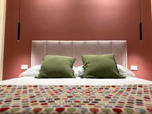 The space, designed with attention to every detail, features an elegant double bed and soft lighting that creates a relaxing atmosphere. It offers views of the city's rooftops and direct access to a balcony.