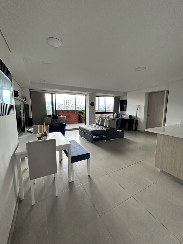 Welcome to your cozy retreat in Medellín! This modern 2-bedroom apartment, featuring a spacious living area with a sofa bed and a fully equipped kitchen. Enjoy stunning views from the balcony with outdoor seating. Located just across from Viva Envigado, the largest mall in Colombia, you'll have easy access to shopping and dining. The building offers amenities like a gym, sauna, and optional jacuzzi and BBQ facilities for a perfect stay.