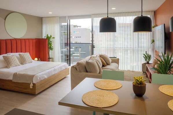 Welcome to your perfect urban escape! This stylish and modern apartment is designed to make you feel at home, with a touch of luxury and all the amenities you need. Enjoy a thoughtfully curated décor — from the relaxing neutral tones in the living area to the vibrant headboard in the bedroom that adds a unique personality.