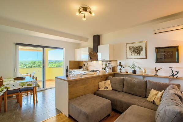 Wunderschön gelegene Wohnanlage mit 5 Wohneinheiten. Wir hatten das Appartement A4, für 4+2 Personen mit einem Doppelbettzimmer, Zimmer mit 2 Betten und einer Schlafcouch. Wir finden das beste Appartement von den 5 angebotenen. Ein riesengroßer Balkon, fast schon Terasse im ersten OG mit wunderschönen Ausblick auf die kleine Bucht. Meer ist 40m entfernt, zum baden muss mann allerdings ca. 300m um die kleine Bucht laufen, da der Strand vorm Haus leider sehr flach reingeht. Für Kinder aber sehr gut geeignet, zum planschen. Der Kontakt zu den Vermietern ist vorbildlich. Super nett und zuvorkommend. Kostenlose Fahrräder stehen zur Verfügung mit denen man in 5 min leichter Fahrt im Hafen und bei Restaurants angekommen ist. Wir kommen auf alle Fälle wieder.