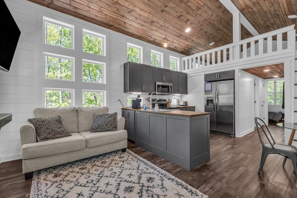 This quint home is the best glamping experience you can find in Menlo Georgia! With top-of-the-line amenities, sleeping accommodations for 8, a beautiful kitchen, stunning windows, and the perfect natural landscape; you and your family will fall in love with this home! Inside your vacation home, you will find a dining table next to the fireplace to create unforgettable memories whether you are cooking, playing board games, or sharing family stories. You will also find an in-unit washer and dryer, free wifi, privacy curtains, a fully stocked kitchen, and much more! Whether you are coming for work or play - this is the perfect space for your next visit to Menlo Georgia!