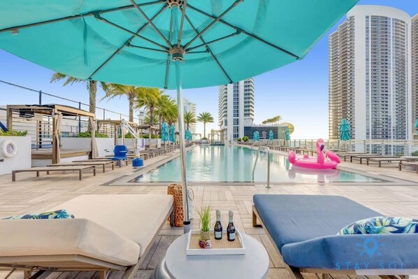 Südfloridas neuestes LUXUS-Hochhausresort mit Blick auf den schimmernden Atlantik. Perfekt für einen Kurzurlaub mit Freunden und der Familie. Unsere gut ausgestatteten 2 Schlafzimmer kombinieren Naturholz und Naturstein mit organischen Texturen und modernster Technologie. Es gibt ein Kingsize-Bett im Hauptzimmer mit komplettem Badezimmer und ein ausziehbares Doppelbett im zweiten Zimmer mit Badezimmer sowie ein voll ausziehbares Schlafsofa im Wohnbereich. Highlights sind private möblierte Terrassen, voll ausgestattete Küchen mit Geräten aus rostfreiem Stahl und eine eigene Waschmaschine / Trockner.