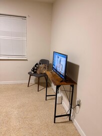 I got the ease of check-in during my stay experience, I was able to park on the driveway with no issues. The community tends to be a little noisy during the night. Although there is air conditioning, I ended up bringing my own fan to sleep throughout the night and it also helped with noise cancellation from the other rooms or the outside. Overall, it was OK experience for someone that works most of the day and just need somewhere to sleep. There’s a nice little terrace on the front for anyone that would enjoy sitting outside. The neighborhood doesn’t seem the most appealing or safe but during my stay as a solo female traveler, it turned ok. There is one shared bathroom that I saw and cleaned every day although I only stayed two nights. Just keep in mind that every guest experience is different just because of the other different guests that are also staying at the same time as you. It was nice to have a pretty big room with a TV.