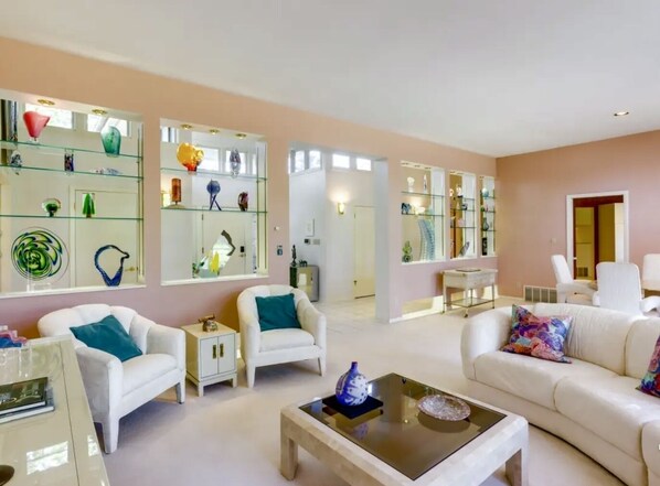 This unusual home is both a fun 80s time capsule and even more beautiful than the photos. It’s HUGE! We loved the museum quality glass display and the massive kitchen and master suite (TWO walk-in closets, a SUPER comfy bed, and a giant bathroom. I did more ironing in the laundry room than I had for years; it was so nice to have an ironing board in front of a corner window. We saw a hummingbird, a House Finch, and s coyote pup in the back yard. The house was quiet and worked out perfectly for our visit.