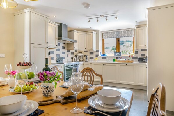 - Electric range style cooker, microwave, fridge/freezer and dishwasher. Smeg immersion food mixer & Nespresso coffee machine