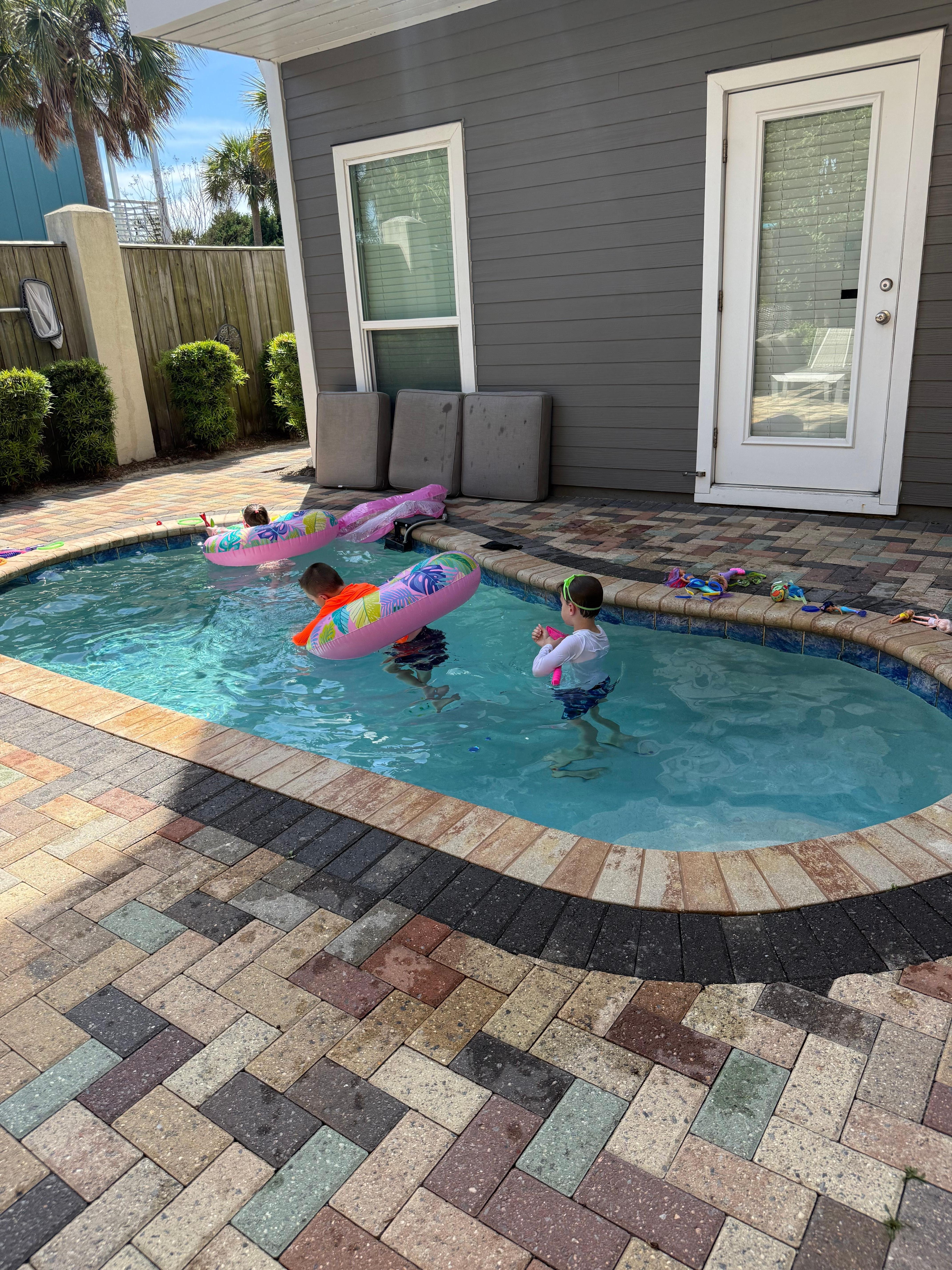 We had a great stay overall. The house was very clean, and there were plenty of bathroom towels. The bedding was comfortable, and the closets were very spacious—large enough to fit a pack and play or even a small air mattress. The kitchen was well stocked, aside from kitchen towels, which was clearly noted in the listing.We had six adults and four children under 10 in our group, and the layout worked well for us. The golf cart was a nice perk, although it was not charged upon arrival.A few things to be aware of: the listing describes the property as oceanfront/ocean view, which felt a bit misleading. You can see the ocean slightly from the front balcony, but it is not a direct or expansive view. The walk to the beach is about 10 minutes and you have to cross a very busy main roadThe pool is quite small, and I would recommend the owner include its dimensions in the listing. With multiple kids wanting to swim and play, it felt a bit limited. There is also a 35/day fee to heat the pool, which seemed high given the size.One other minor inconvenience was the alarm system on the back doors. The doors are somewhat difficult to open and close quickly, so the alarms went off frequently, even when button was pushed which became frustrating over time.That said, we did appreciate having laundry on both the top and bottom floors and the host was great! Overall, we enjoyed our stay, but a few listing clarifications and small adjustments would make the experience even better.