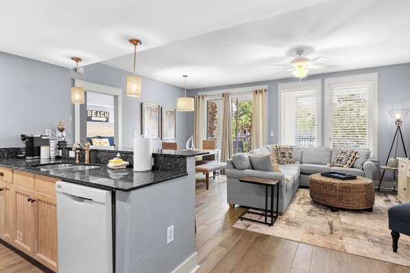 Wenn Sie in unserer Wohnung im MARKET STREET INN in SANDESTIN ™ spazieren, werden Sie von der Lagune mit Blick auf den Pool begeistert sein. Das blaue Wasser und die Palme laden zum Baden ein. Verbringen Sie warme Sommerabende auf dem übergroßen Balkon und genießen Sie das tropische Ambiente!