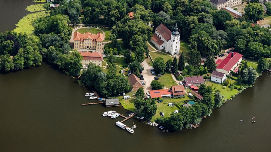 Inmitten der Mecklenburger Seenplatte verzaubert das Schloss Mirow mit seiner barocken Architektur und der idyllischen Insellage im Mirower See. Entdecke im historischen Stadtkern die Johanniterkirche und schlendere anschließend durch den weitläufigen Schlosspark mit seinen alten Baumbeständen und dem malerischen Uferweg.