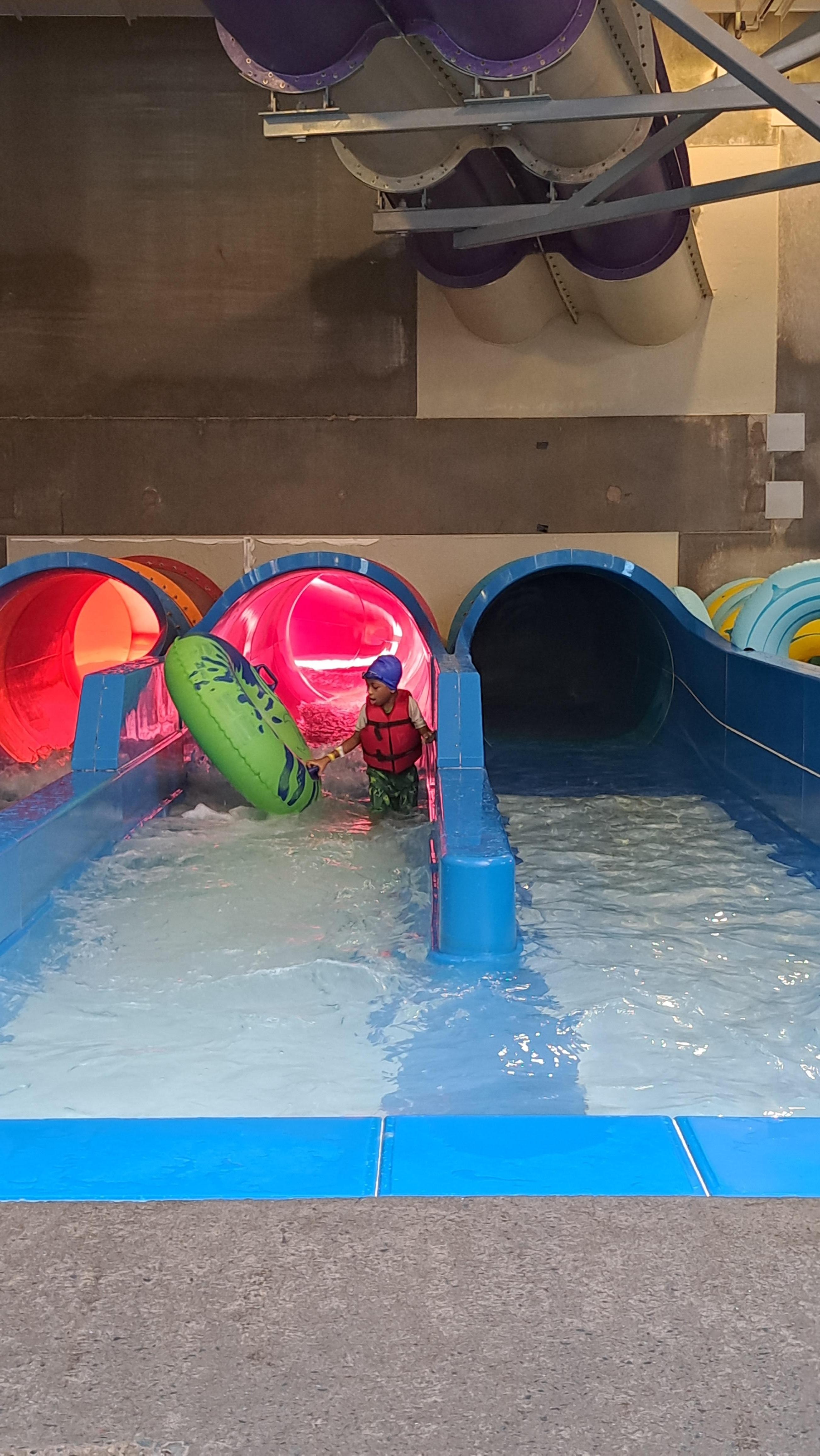 The best things about this place is the updated decor and the arcade. The waterpark is much smaller than I expected, there isn’t even a wave pool. It’s well designed for small kids with two designated areas for younger ones; one with slides/ sprinklers and a bigger one with playground style steps, sprinkler and slides. The lazy river is nice especially because of the bay-like entrance. But that’s about all it has. Besides the fact that this place is small, I was disappointed with the service. Our room wasn’t ready until 40mins after check-in time, the sweet shoppe opened almost 20mins late, and the high line cafe had one staff working the front for the morning. The best thing about this place was the arcade which had nice games at 6-12 credits each, play-til-you-win claw machine games that guaranteed a prize for the little ones, and the redemption place had low point quantity prizes. There were so many kids running around unsupervised and making noise in the hallway well past the 9pm quiet time so I feel they are also lacking in security staff. I think this place has so much potential. Idk if they are reducing staff to cut costs but it affects customer satisfaction.