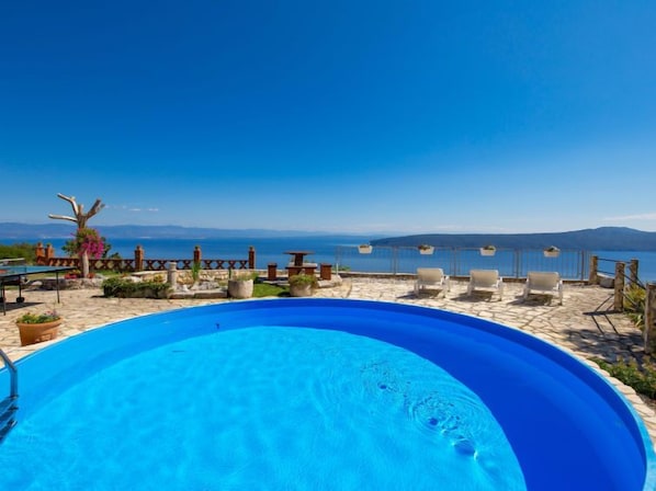 Sv. Jelena 6 km von Mošćenička Draga: Doppelhaus "Kristijana". Im Weiler Sv. Jelena, 3 km vom Zentrum von Brseč, ruhige, sonnige, erhöhte Lage, 5 km vom Meer, 5 km vom Strand, in einer Sackgasse, im Grünen, Richtung Süden. Zur Alleinbenutzung: naturbelassenes Grundstück 5'000 m2 mit Wiese 30 m2, Schwimmbad rund (5 m Durchmesser, 120 cm tief, saisonale Verfügbarkeit: 04.Mai. - 14.Sep.). Aussendusche, Tischtennis, Terrasse (100 m2), Grill. Im Hause: Internetzugang, Billard. Parkplatz (für 3 Autos) beim Haus auf dem Grundstück. Einkaufsgeschäft 3 km, Restaurant 800 m, Bushaltestelle 350 m, Steinstrand 5 km. Sportzentrum 6 km. Bitte beachten: Fahrzeug empfohlen.