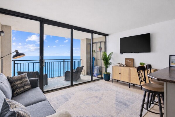Welcome to our newly renovated luxury oceanfront condo – a chic sanctuary where coziness meets the shoreline, with stunning sea views from your private balcony. Inside, find a haven of elegance, a fully equipped kitchen meticulously designed space for a romantic escape or family getaway.