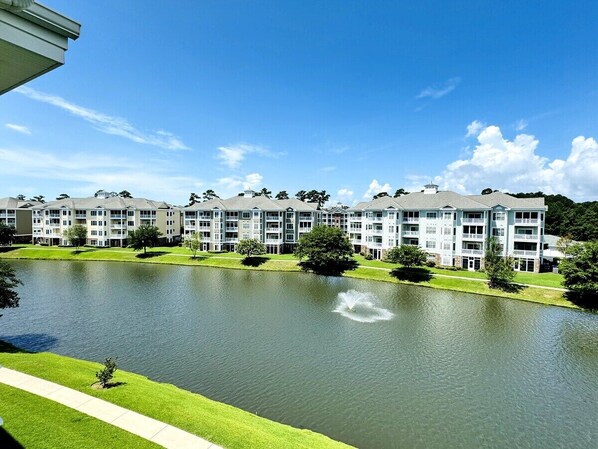 WELCOME to this TOP floor unit in Magnolia Pointe + elevator. You have to step into this beautiful unit to feel the warmth and experience how inviting it is. Step out onto the balcony and enjoy the afternoon sun, overlooking one of the larger lakes within Magnolia Pointe. This peaceful setting is very private and a front row seat for our South Carolina sunsets!