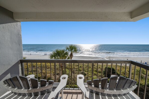 Diese atemberaubende Einheit am Meer ist reich dekoriert mit elegantem nautischem Dekor und einem coolen Küstenfarbschema und fängt die zeitlose Schönheit der Küste von South Carolina perfekt ein. Wachen Sie jeden Morgen mit dem sanften Gesang der Möwen direkt vor dem Fenster Ihres geräumigen Hauptschlafzimmers am Meer auf. Beginnen Sie Ihren Tag mit einem Kaffee und einem Sonnenaufgang an der Ostküste auf Ihrem komfortabel eingerichteten Balkon am Meer. Nachdem Sie ein köstliches Frühstück in der praktischen Küche in voller Größe zu sich genommen haben, ziehen Sie Ihre Badehose an und gehen Sie zur Tür hinaus, um einen Tag voller Spaß in der südlichen Sonne zu verbringen.