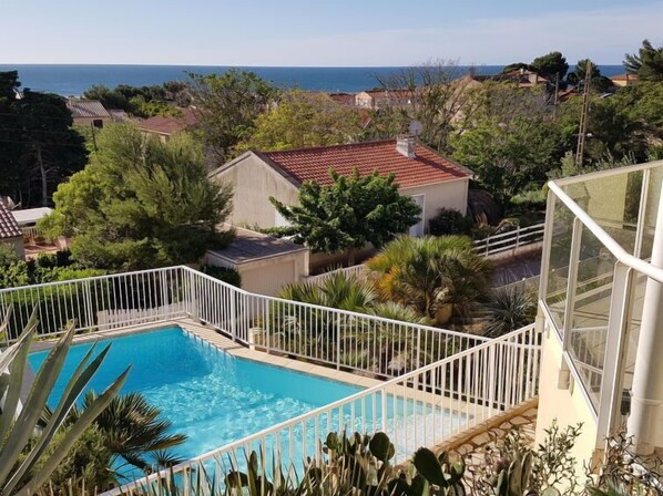 4-Zimmer-Haus 110 m2. Komfortabel und schön eingerichtet: Wohn-/Esszimmer 50 m2 mit offenem Kamin (nur Deko), TV (Flachbildschirm). Ausgang zur Terrasse, Richtung Südosten. 3 Zimmer, jedes Zimmer mit 1 franz. Bett (140 cm, Länge 190 cm). Küche (Backofen, Geschirrspüler, 4 Glaskeramikplatten, Mikrowelle, Tiefkühler, elektrische Kaffeemaschine, Kapseln für die Kaffeemaschine (nespresso) extra). Ausgang zur Terrasse, Richtung Westen. Dusche, sep. WC. E-Heizung, Klimaanlage. Grosser Garten 700 m2. Terrassenmöbel, Gartengrill. Sehr schöne Sicht auf das Meer und das Schwimmbad. Zur Verfügung: Waschmaschine, Haartrockner. Internet (Wireless LAN, gratis). Parkplatz (eingezäunt). Bitte beachten: Rauchmelder. Inserat einer Privatperson nach Artikel 155, IV, CGI. 85068621300016