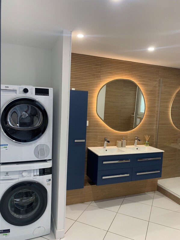 Wäscherei – das bietet dir dieses Apartment. Dieses Apartment überzeugt durch eine Waschmaschine, einen Haartrockner und eine Dusche.