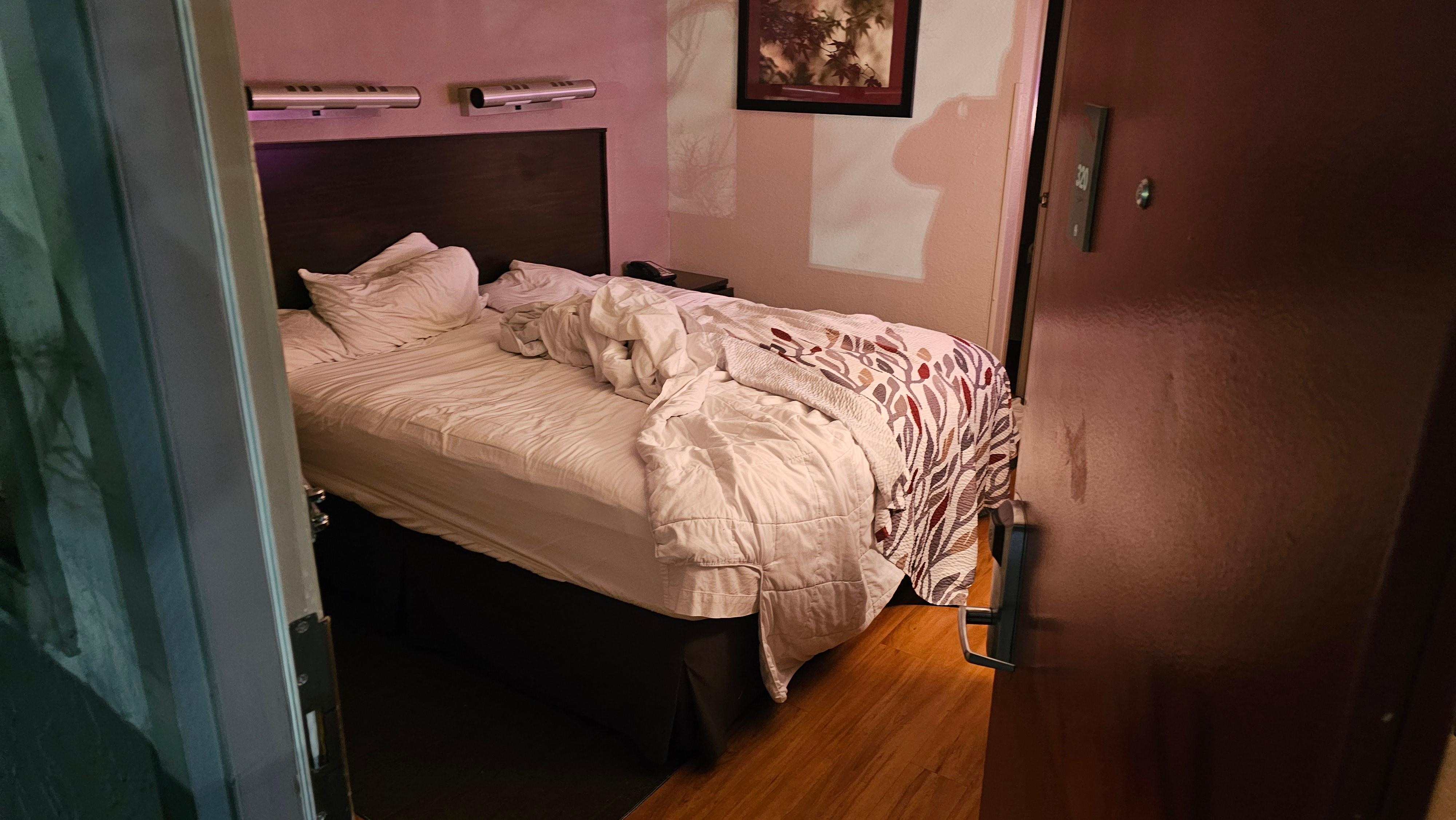 The shower was disgusting and had hairs all over it. The bed also had hair all over bottom sheet it was very clear it was never cleaned. But I had to wait 30 minutes for someone to show up in the office when I checked in and then when I went back down several times nobody was in the office but was very late and I had an early flight. I was completely disgusted at the fact the room wasn’t cleaned but the beds weee just made up with dirty sheets. Unacceptable.