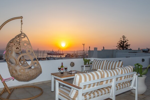 DownTownVilla is a house located at the heart of the old town of Naxos, 10’ walk from ferry, 5’ walk to Aghios Georgios beach. Additionally, convenient stores are all around. A 7’ walk takes you to the bus stop and gives you the opportunity to visit all isolated beaches and the traditional villages of the island. The house is spread over 3 floors with the total of 140sq.m. There are outdoor terraces on 2 different levels with excellent sea view. And also there is a close parking area.