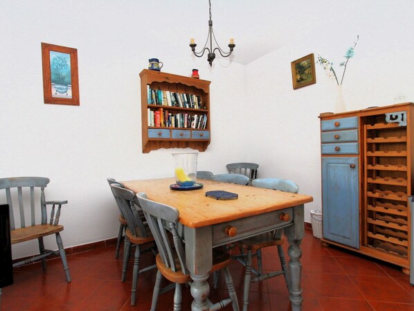 Es gibt 3 Schlafzimmer, die alle mit Deckenventilatoren ausgestattet sind. Das Hauptschlafzimmer hat ein Doppelbett, Einbauschränke und ein komplettes Bad mit WC, Waschbecken und Kopfbrause. Das zweite Schlafzimmer hat ein Doppelbett und Einbauschränke und das dritte Schlafzimmer hat zwei Einzelbetten.