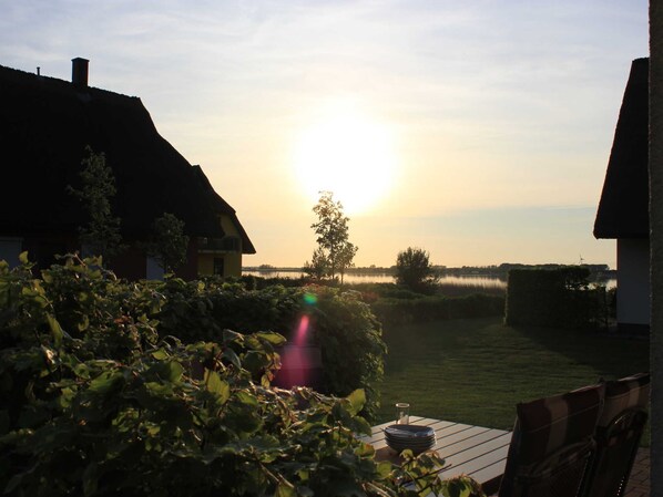 2008 neu errichtetes Reetdach-Ferienhaus. Ruhige, idyllische Lage direkt am Breetzer Bodden.