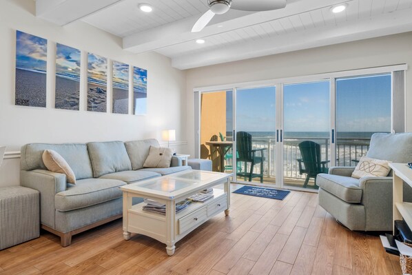 One of the standout features of this condo is its private balcony, offering panoramic views of the surrounding beauty. Relax and unwind as you bask in the gentle sea breeze, enjoying your morning coffee or sipping cocktails while taking in the breathtaking vistas. The balcony is a perfect spot to savor unforgettable sunsets or simply soak up the serene ambiance of New Smyrna Beach.