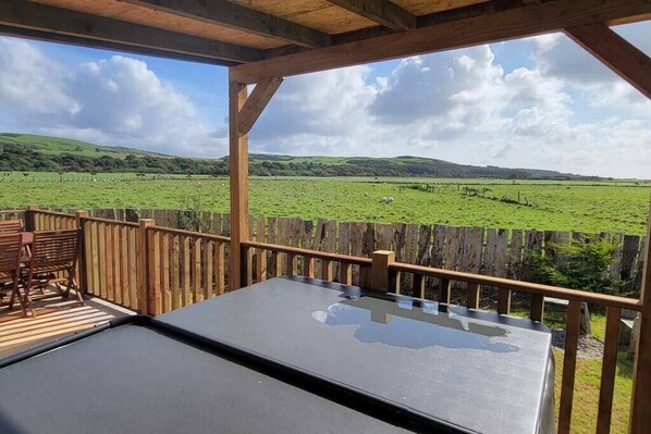 A beautiful roomy, cosy and warm open plan space with decking boasting a dining area and covered hot tub area. You'll have your own private fully enclosed garden with a fire pit and bbq to fully enjoy the outdoors.