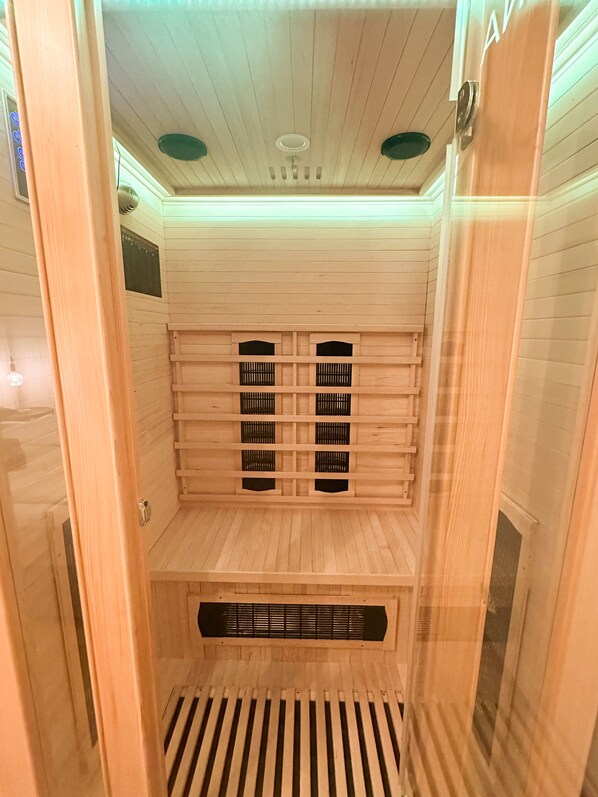 Wellness: Entspannen Sie in unserer Infrarot-Sauna – ideal nach einem Tag in der Stadt oder nach Aktivitäten in der Natur.