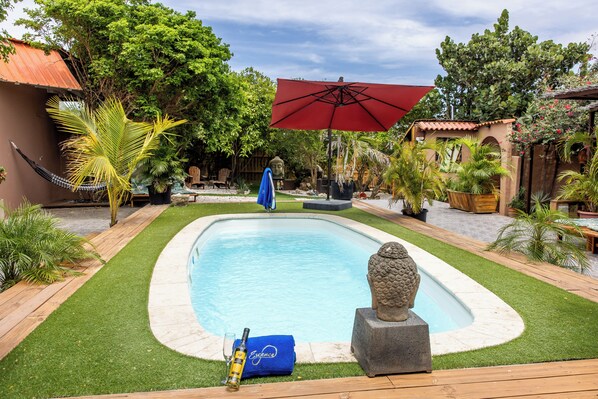This property consists of 5 Casitas that together accommodate up to 10 guests. **Children are not allowed, as this is primarily an adult property**, located in a peaceful haven surrounded by a lush tropical garden.