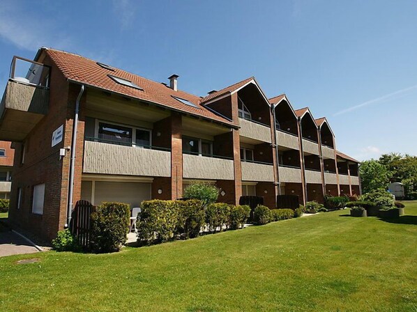 Appartementhaus. Im Ort, 100 m vom Meer, 100 m vom Strand. Zur Mitbenutzung: Sitzplatz, Kinderspielplatz. Im Hause: Zentralheizung, Waschmaschine (extra), Wäschetrockner (zur Mitbenutzung, extra). Parkplatz beim Haus. Supermarkt 1.8 km, Restaurant 100 m, Bäckerei, Café, Bushaltestelle 800 m, Bahnstation "Norddeich" 1.2 km, Fähre 1.2 km, Sandstrand, Freibad 14 km, Hallenbad 600 m. Golfplatz (18 Loch) 8 km, Surfschule 400 m, Tennis 2.5 km.
