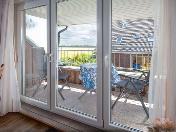 "Ballertutje", 2-Zimmer-Wohnung 45 m2, im Obergeschoss. Gemütlich eingerichtet: Wohn-/Esszimmer 29 m2 mit 1 Wandschrankbett (90 cm, Länge 190 cm), Sat-TV (Flachbildschirm), Stereoanlage. Ausgang zum Balkon. 1 Zimmer 11 m2 mit 1 Doppelbett (2 x 90 cm, Länge 200 cm). Kochnische (4 Kochplatten, Geschirrspüler, Toaster, Wasserkocher, elektrische Kaffeemaschine). Dusche/WC. Balkonmöbel. Zur Verfügung: Kinderhochstuhl (extra). Bitte beachten: Nichtraucher-Unterkunft. Rauchmelder.