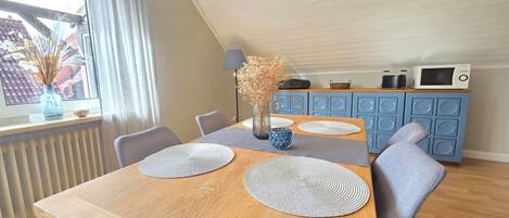 Dieses Ferienhaus für Familien in Norden ist zu Fuß gerade mal 5 Minuten entfernt von: Hundestrand Norddeich, Strand von Norddeich und Nationalpark Niedersächsisches Wattenmeer. Ebenfalls höchstens 10 Minuten entfernt: Ocean Wave und Erlebnispark-Norddeich. Bahnhof Norddeich ist 18 Gehminuten und Bahnhof Norddeich Mole 18 Gehminuten entfernt.