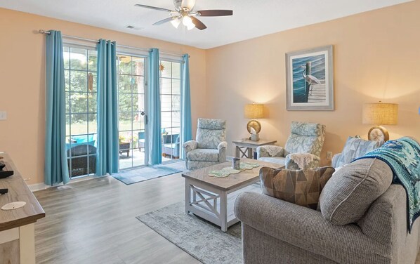 2 Br condo is at Iron Wood in Barefoot Resort on 1st floor. It backs up to the Greg Norman course on the 7th fairway. Free access to Iron Wood Pool and shuttle bus to the Tower Pool, beach, and Barefoot Landing. Free parking in front of the building. Barefoot Landing has tons of attractions, shopping, restaurants, and nightlife.