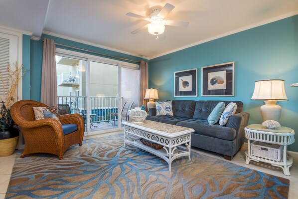 Great little condo for our family of 4. Unit was clean and well stocked. Easy access to the beach, crosswalk is just at the end of the parking lot - 5 min walk total. We will happily stay here again.