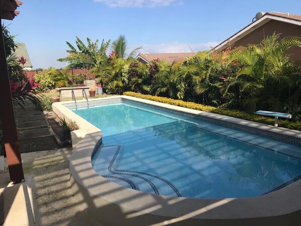 Incredible back yard with the private pool makes this property amazing. Being just 10 mins away from ocho rios town and the beach makes it a great location. The fire pit in the back is great for friends and family to wind down and have a good time.