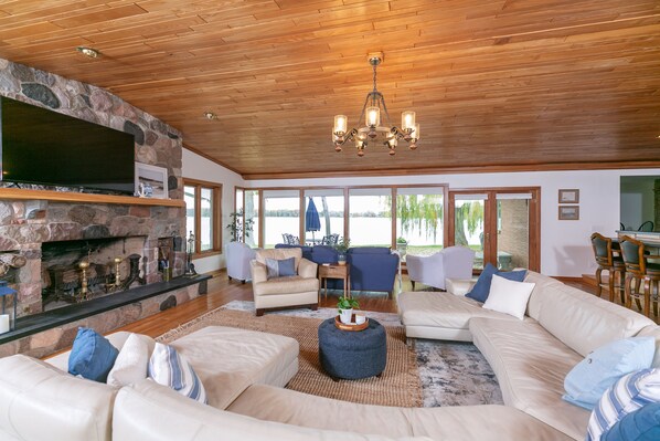Escape to our exclusive lakeside retreat, nestled on 2 acres of waterfront paradise! Enjoy breathtaking views from 2 living areas, a screen porch, patio with outdoor seating, or private pier.