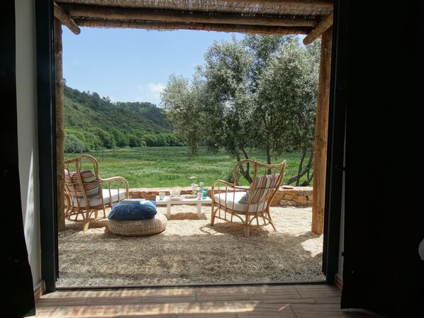 Frieden, Raum und Sonne. Und das in der Nähe der schönen Südwestküste Portugals. Dieses schöne freistehende Doppel-Naturhaus befindet sich hier, umgeben von Oliven- und Obstbäumen, nur fünf Kilometer von der Küste entfernt. Das Naturhaus ist über eine Privatstraße erreichbar und verfügt über einen eigenen Parkplatz. Es ist sehr ruhig und hat eine Terrasse mit Sonne den ganzen Tag und einen schönen Blick über das grüne Tal. Genießen Sie an ruhigen Abenden eine schöne Aussicht und wachen Sie ausgeruht mit Vogelgezwitscher auf. Das Haus ist stilvoll eingerichtet und komplett ausgestattet. Die Küche in der Küche verfügt über einen Zwei-Flammen-Herd, einen Kühlschrank, eine Mikrowelle und eine Kaffeemaschine. Ein Holzofen sorgt an den kälteren Tagen in der Früh- oder Spätsaison für angenehme Wärme. Neben einem schönen Doppelbett gibt es ein modernes Badezimmer mit Waschbecken, Dusche und WC. Draußen auf der Terrasse stehen Gartenstühle und Sie können den Grill benutzen. Kurz gesagt; Alle Zutaten sind vorhanden für einen perfekten erholsamen Urlaub!