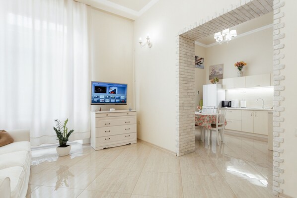 Das Apartment near Opera Theatre in Odessa liegt 1 Gehminute vom Opern- und Balletttheater von Odessa entfernt und bietet klimatisierte Unterkünfte. Die Unterkunft bietet Stadtblick. Dieses Apartment mit 1 Schlafzimmer bietet kostenfreies WLAN, einen Flachbild-Sat-TV, eine Waschmaschine und eine Küche mit einer Mikrowelle und einem Kühlschrank. Beliebte Sehenswürdigkeiten in der Nähe des Apartments sind das Archäologische Museum von Odessa, das Duke de Richelieu Monument und das Museum für westliche und östliche Kunst von Odessa. Zum internationalen Flughafen Odessa gelangen Sie nach 8 km.