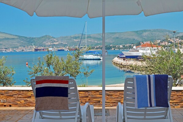 Schöne Wohnung in TOP-Lage. Blick aufs Meer und Hafen. Direkte Fähre nach Trogir, Restaurants in 1 min erreichbar, Flughafen sehr nah.Immer wieder gerne.
