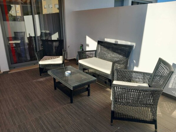 - 2. Stock: 42m2 Terrasse, Pergola, Tisch, Liegestühle
