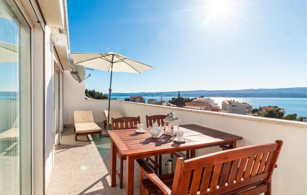Auf der Terrasse mit einem herrlichen Panoramablick auf das Meer. Der Weg zum Strand ist etwas steil. Besichtigen Sie die Stadt Omis und entdecken Sie die Sport-, Kultur- und Unterhaltungsangebote, die während der Sommermonate geboten werden.