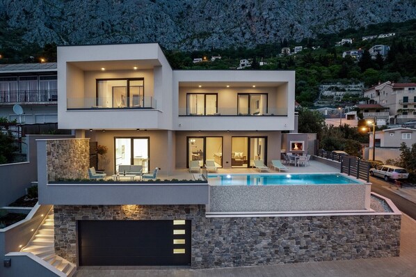 Villa Una ist eine hübsche und sehr stilvolle Unterkunft, perfekt für einen entspannten Familienaufenthalt, bei der Sie alles, was Sie brauchen, zu Fuß erreichen können, und die Villa selbst ist sehr gut ausgestattet, mit sehr bequemen Betten und Matratzen, hochwertigen Möbeln usw viele nützliche Annehmlichkeiten für Ihren perfekten Aufenthalt. Es ist voll klimatisiert und verfügt über kostenfreies WLAN. Es ist auf 3 Ebenen mit 300 m2 Nutzfläche organisiert und bietet 3 komfortable Schlafzimmer mit Balkon und herrlichem Meerblick, 3 Badezimmer, einen stilvollen Wohn-/Essbereich, einen beheizten Infinity-Pool von 34 m2, eine Infrarotsauna und einen Spielbereich mit PlayStation4, ein Billardtisch (Billard) und eine Tischtennisplatte.