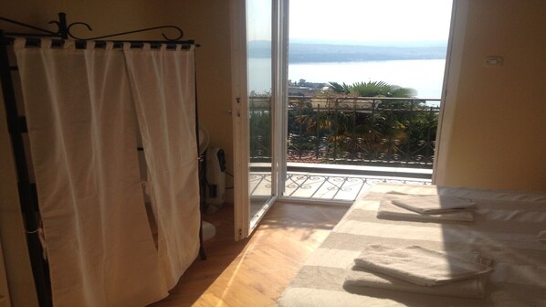 Jabuka liegt im 1sten Stock und verfügt über zwei getrennten Schlafzimmern. Das Elternzimmer hat direkten Zugang zum Balkon. Von dem aus hat man einen 180° Blick auf die Insel Cres, Rijeka und das endlose adriatische Meer.