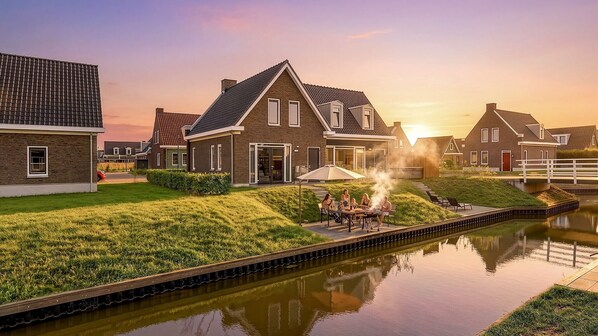 Durch die Flügeltüren im Wohnzimmers gelangen Sie auf die möblierte Terrasse. Die Terrasse befindet sich direkt am Wasser. Der ideale Ort, um nach einem schönen Tag zu speisen oder zu genießen! Außerdem haben Sie Zugang zu einem privaten Anlegesteg, an dem Sie Ihre Schaluppe festmachen können. Vom Wasser aus an Ihrem Ferienhaus befindet, können Sie direkt zum IJsselmeer fahren.