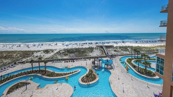 Guests of Phoenix Gulf Towers enjoy access to world-class amenities, including a lazy river, waterslide, fitness center, and direct beach access.