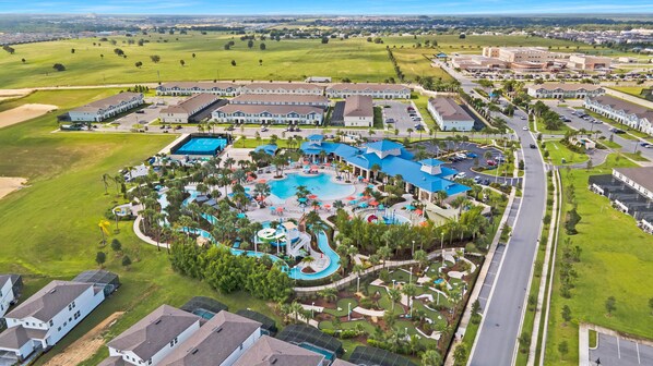 ☀ Full access to resort amenities; 140,000-gallon resort-style pool, water park, splash pad, arcade, fitness center, sports complex, marketplace, mini golf + more